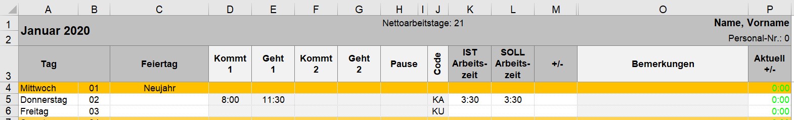 und Kurzarbeit Restzeit (KA) diesen Code kann man für alle anderen Formen einsetzen.