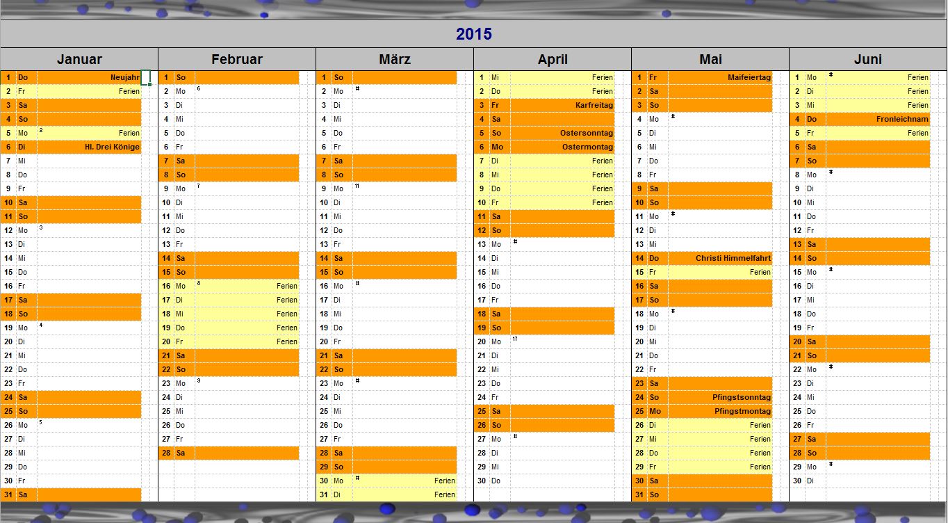 Hier finden sie den aktuellen Kalender für Excel und OpenOffice zum kostenlosen Download.